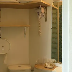 The rooms have private bathrooms with a separate toilet and a shower. They have a simple interior.