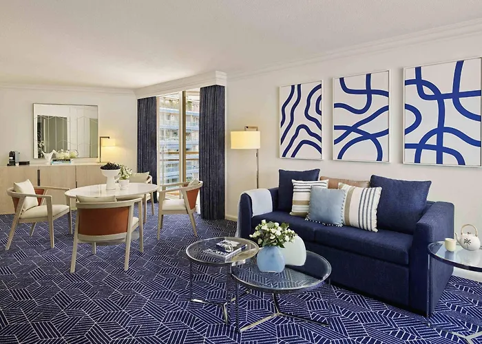 Dit 4-sterren Le Meridien Beach Plaza Hotel Monte Carlo is gelegen op een privé strand, op wandelafstand van slechts 5 minuten van de Chapelle Sainte Therese.